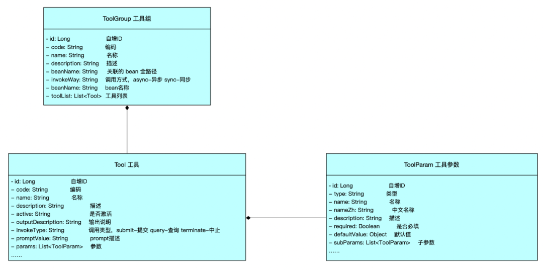 从示例中看出工具的描述信息不能通过代码结构化实现,所以单独存储到 promptValue 字段中,这样不仅能减小 prompt 上下文的 token 数量,还能保留工具参数的可描述性。