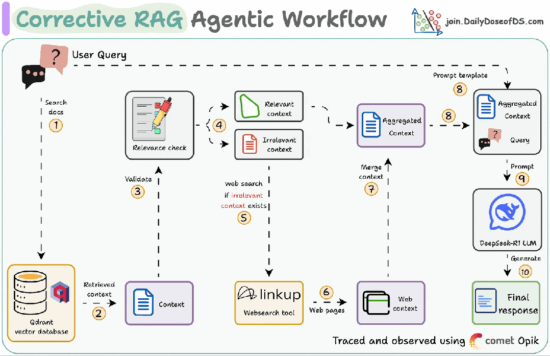 不仅检索,还会自动判断质量、联网补充、拦截错误答案。