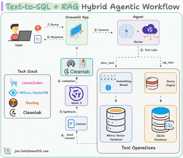 一次查询,同时搜索数据库(SQL)和文档库(RAG),还有 AI 守门员把关质量。