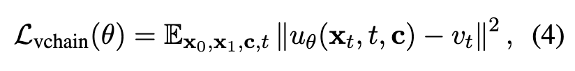 每个 被视为一个单帧视频,并与文本描述 配对。 这些对 用作训练数据,以相同的 Flow Matching 目标函数(如公式 )对视频扩散模型进行微调: