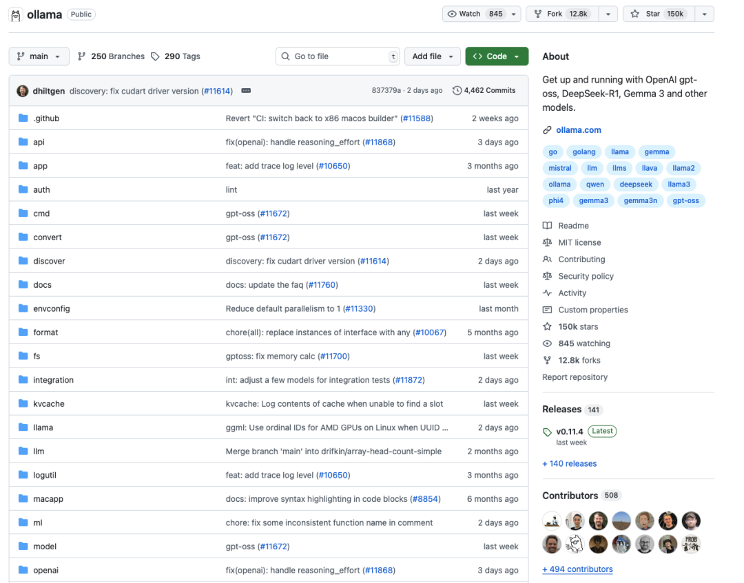 截止目前 Ollama 在 Github 已斩获 150k+ 的 Star,火爆程度可想而知。