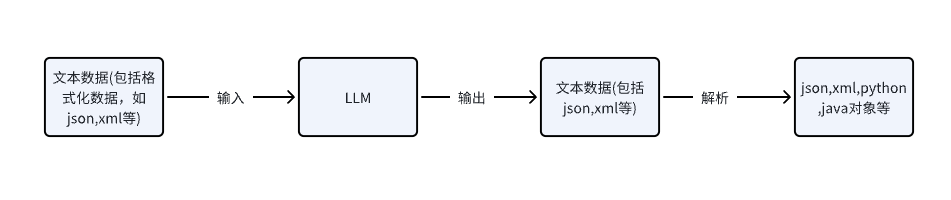 注意:大模型只接受一种输入和输出,那就是文本字符串;我们需要什么格式的数据,需要把这些文本转换成对应的数据格式。