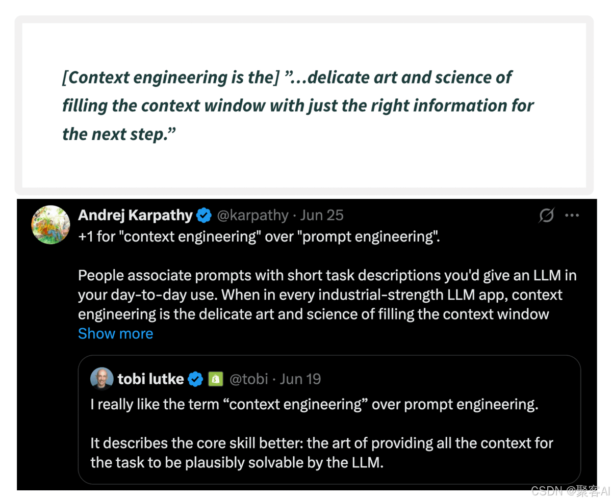 简单来说,上下文工程是将正确的信息以正确的格式在正确的时间传递给LLM的艺术和科学。