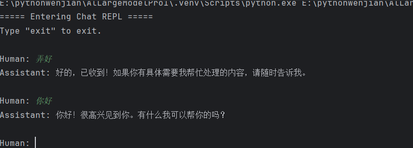 到这里就已经完成了,可以在控制台与ai交流