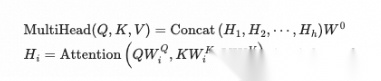 多头注意力机制是进行了多个self-attention的结合,每个head都会学到不同表示空间中的特征。从而较好的表征序列中的关联关系。 运算为: