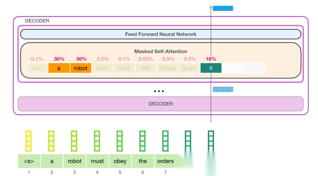 - Key:关键向量就像是段中所有单词的标签。我们在搜索相关词语时会与它们进行匹配。