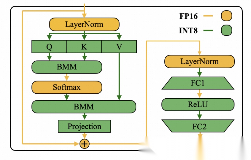 在一些自动混合精度比如torch中实现的方法,会自动将归一化等需要高精度的计算在梯度累计时仍使用FP32,这样可以保持精度避免溢出。 混合精度训练迭代示意图:[@micikeviciusMixedPrecisionTraining2018]