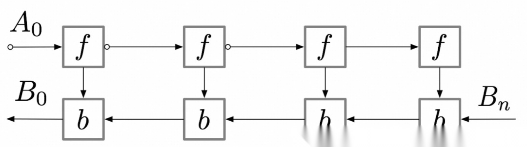 对于具有n层的简单馈送神经网络,梯度计算图如下图所示:
