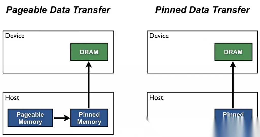 使用锁页内存(pin_memory):此设置允许将数据预先加载到CPU的锁定内存中,锁页内存可以防止数据被交换到磁盘上,减少内存交换的时间(拷贝速度可提升一倍)。
