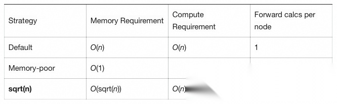 因此,通常使用的优化后方法为sqrt(n)步放置checkpoint策略:对于长度为n的链,每sqrt(n)步放置检查点。如果要求对任何节点最多计算两次,这是内存效率最高的策略。内存需求是 ,计算需求是一个额外的向前传递。这是目前在openai的gradient-checkpoints中采取的默认策略。