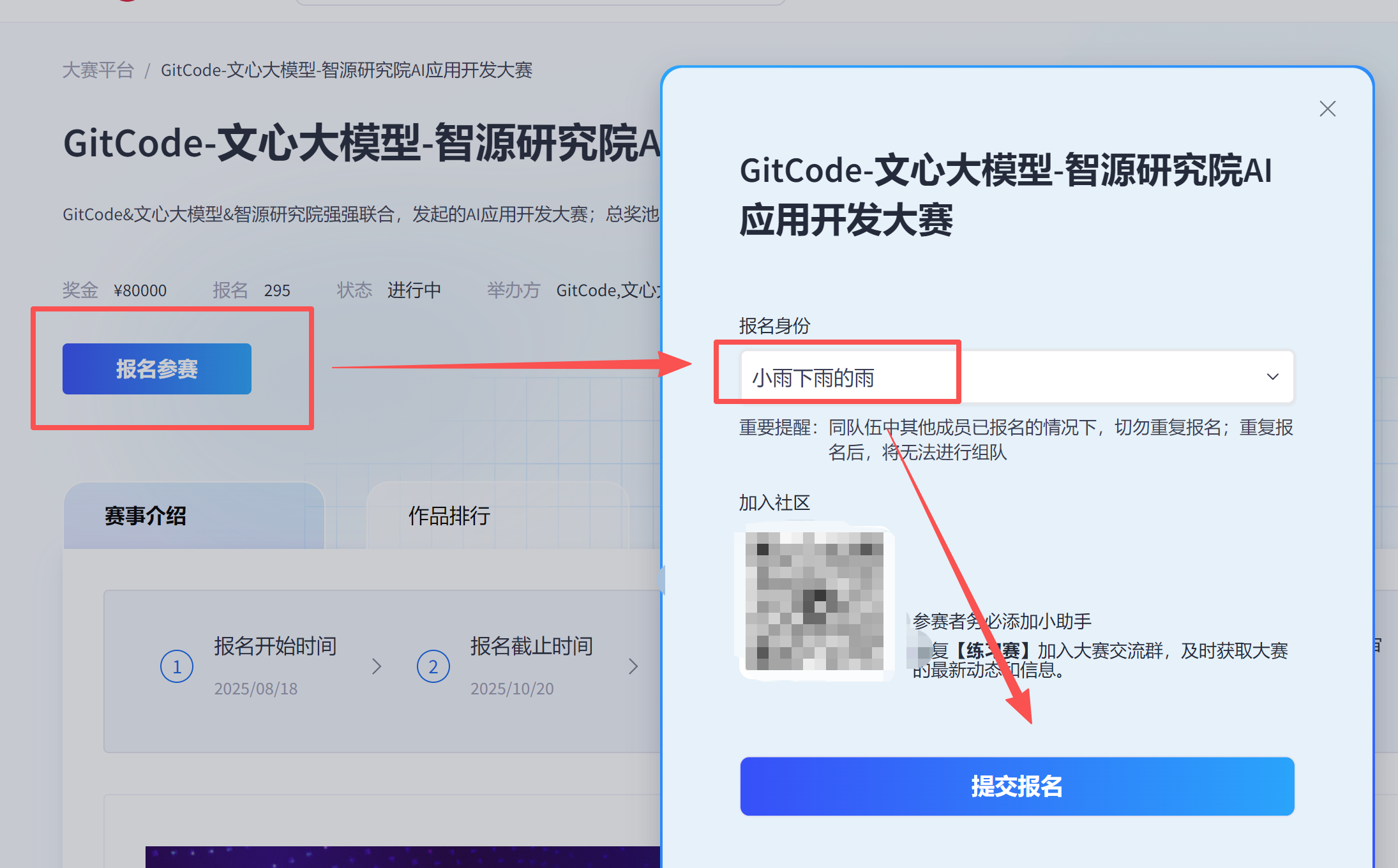 下拉找到GitCode-文心大模型的比赛点击进入。