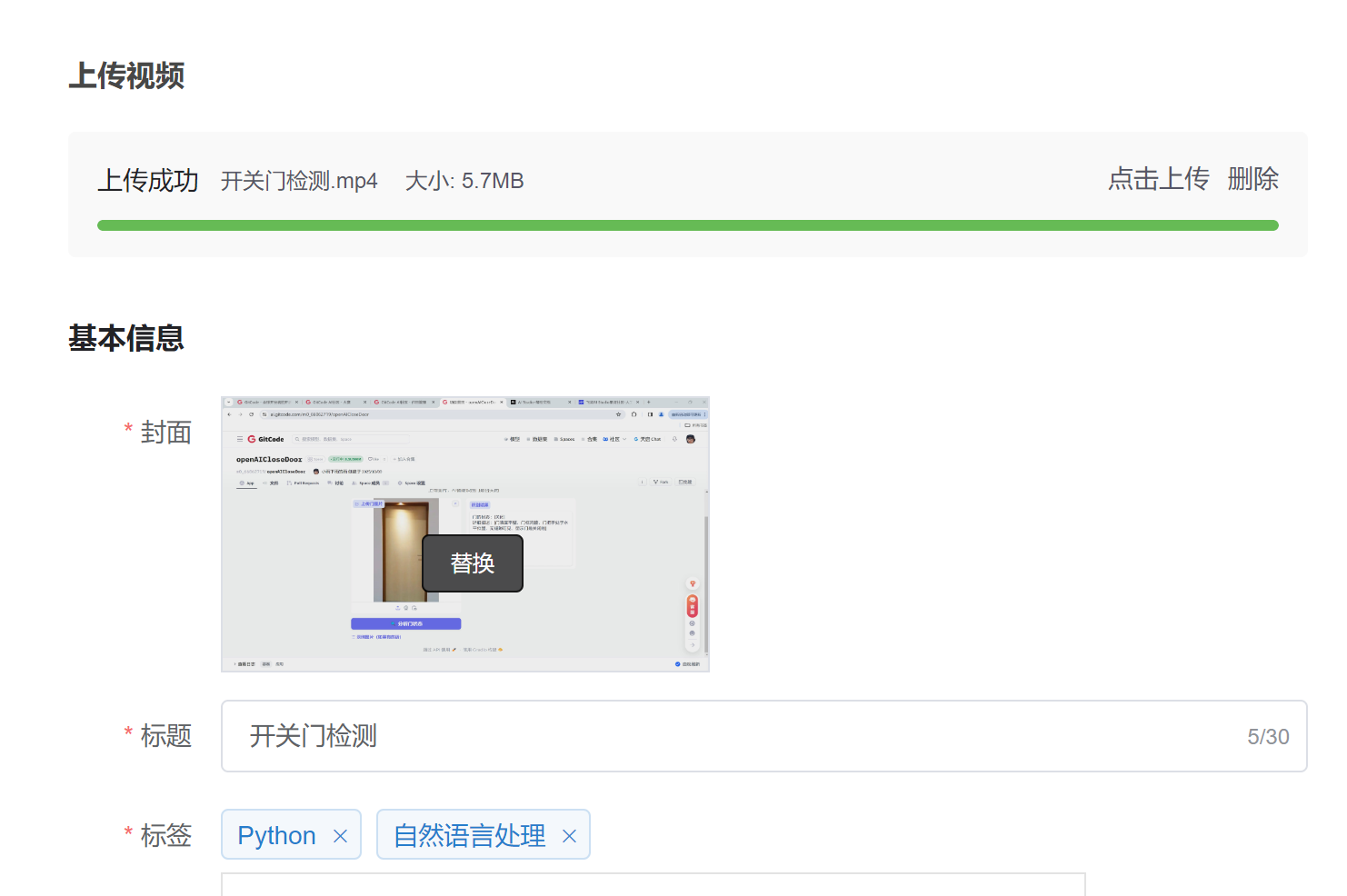 这里建议,如果视频比较大,则上传到CSDN的视频中,提交的时候写上备注。