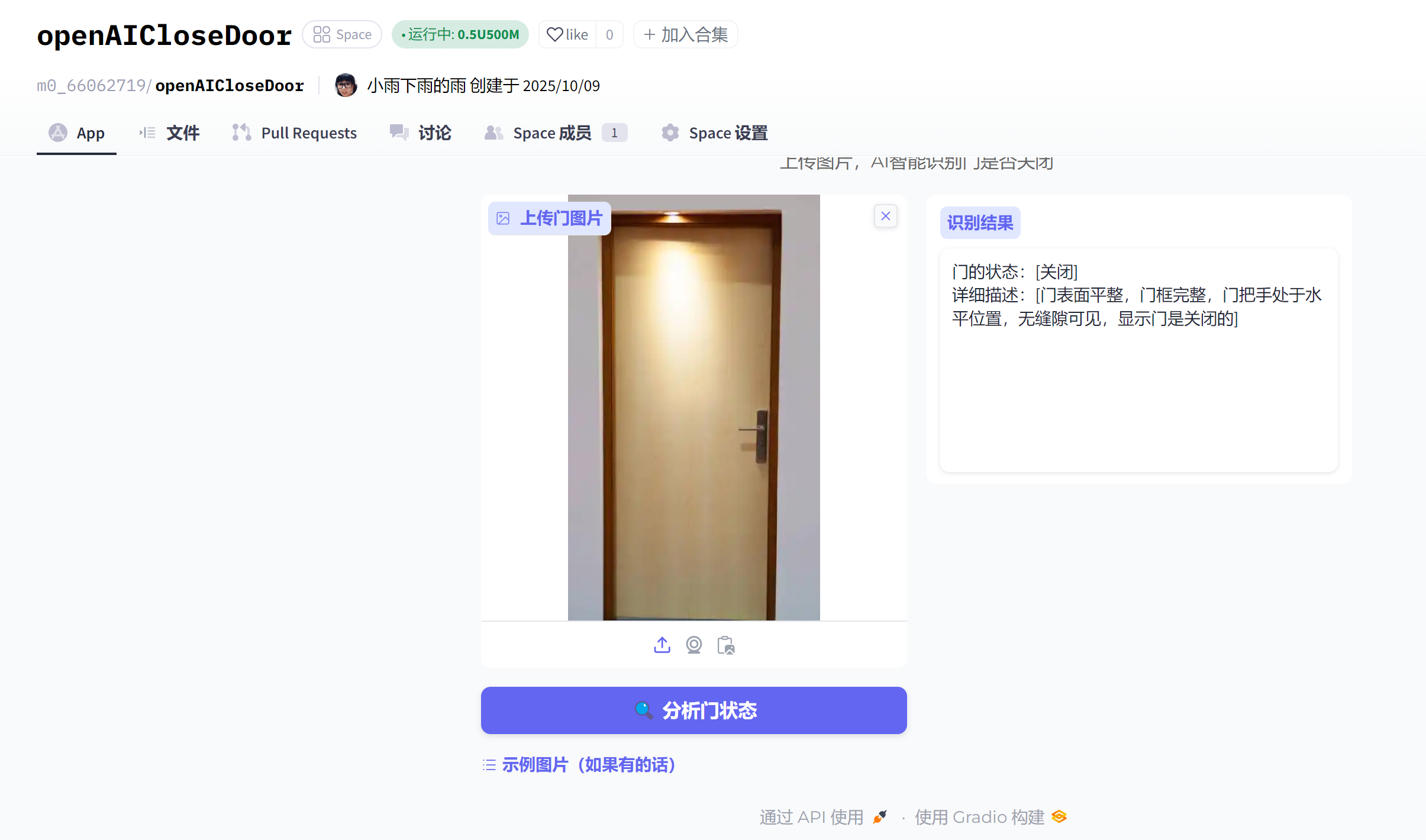 Spaces服务演示地址:https://ai.gitcode.com/m0_66062719/openAICloseDoor