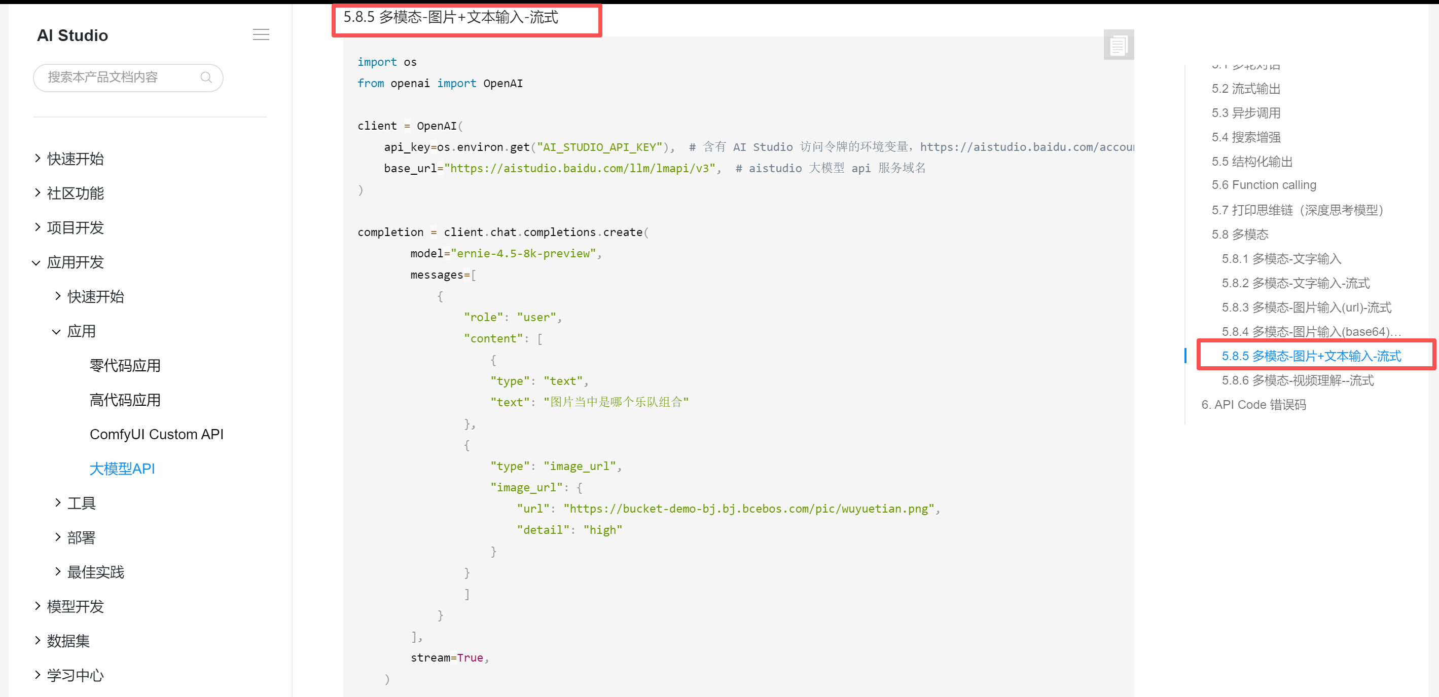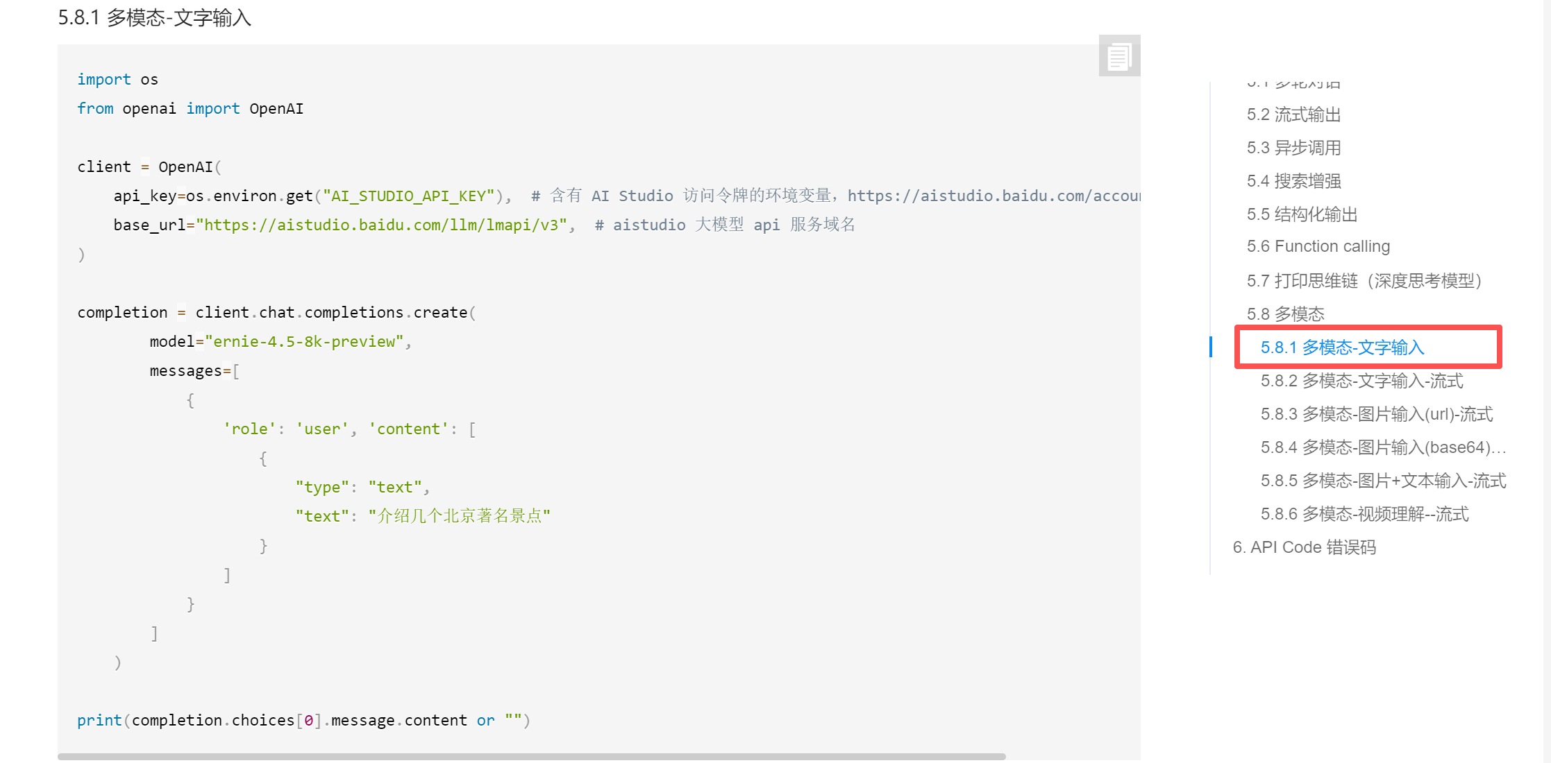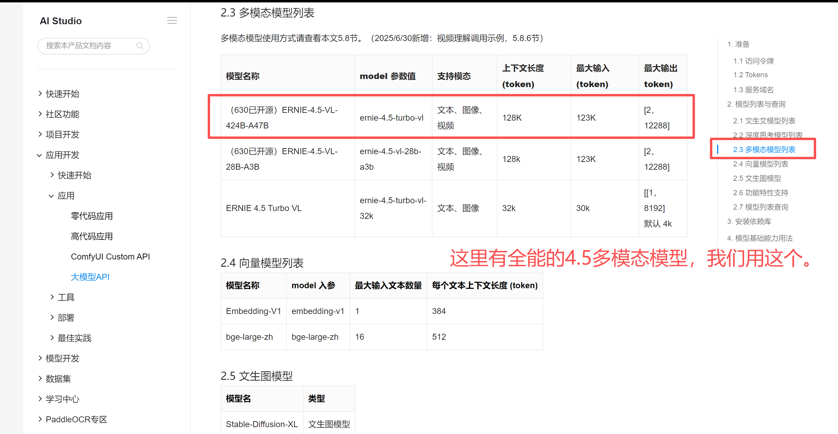 这里需要记住,我们的模型model参数值是:ernie-4.5-turbo-vl