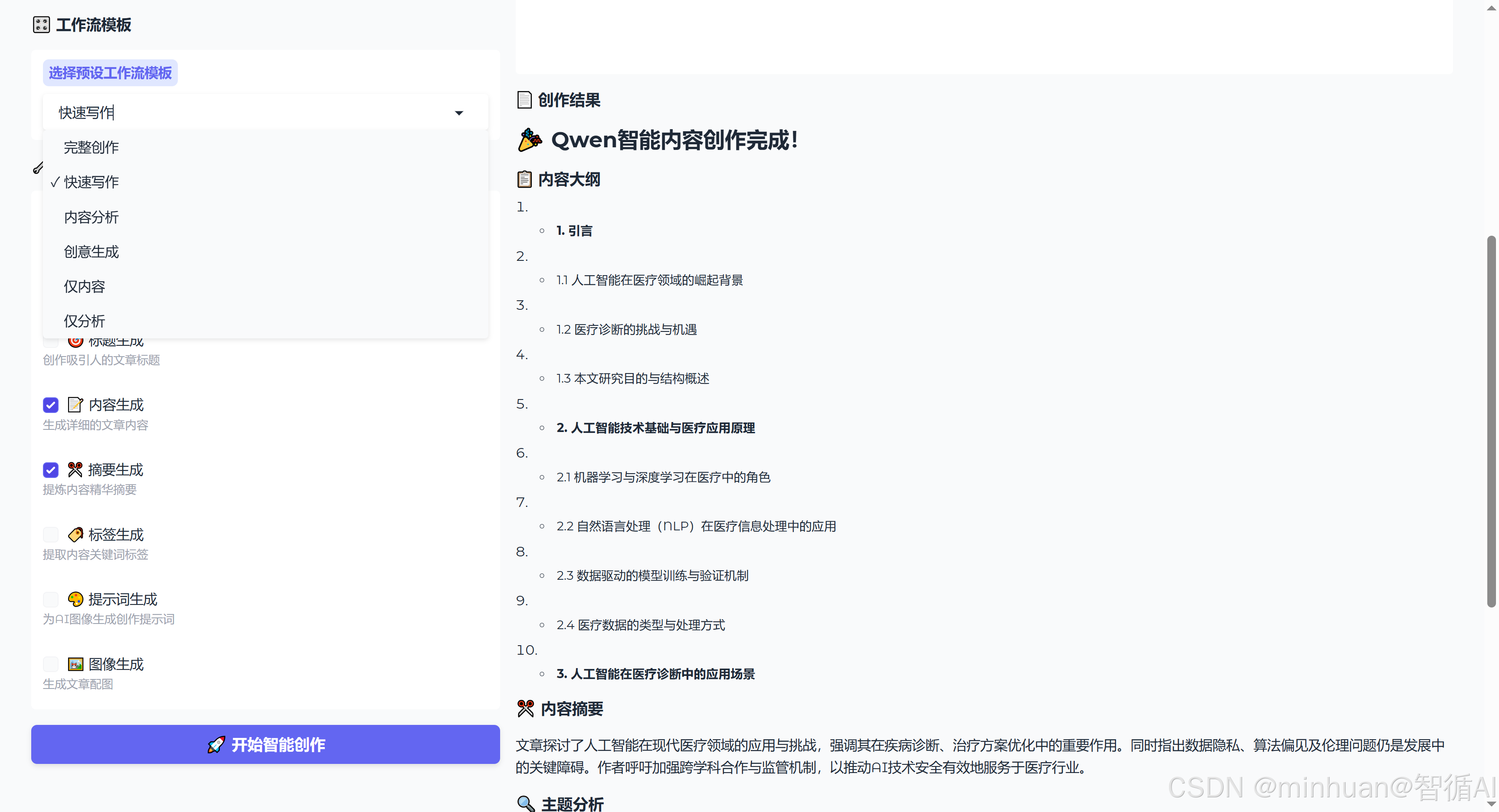 - **智能主题分析** - 使用Qwen深度理解创作主题