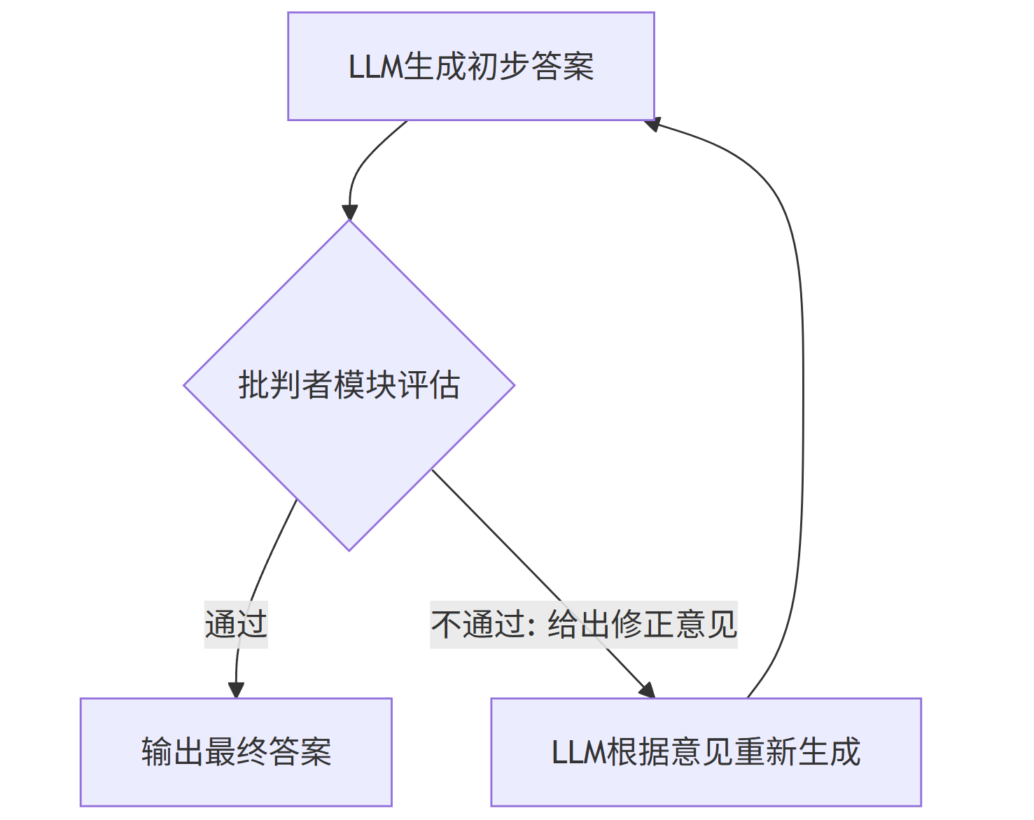 - 如果评估不通过,则将评估意见反馈给主LLM,要求其重新生成。