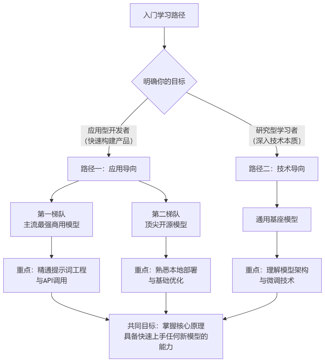 - 不要贪多! 不要试图同时学习GPT-4、Claude、Gemini、Llama、Qwen……这会让你精力分散,无法深入。