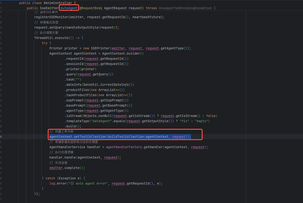 private ToolCollection buildToolCollection(AgentContext agentContext, AgentRequest request) {