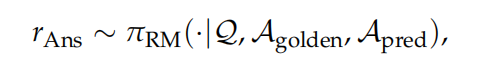 r_Ans 则更智能。它不再要求模型的答案与标准答案一字不差。而是将问题、模型生成的答案、标准答案三者一起交给一个强大的“裁判”模型(如Qwen2.5-7B-Instruct),由它来判断模型答案的正确性。这种基于模型的评估方式更加贴近人类的判断,也更能容忍表达方式上的差异。