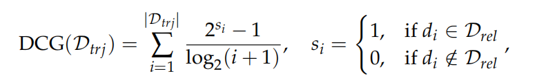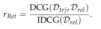 其中,D是检索到的图像序列,Si 是第 i 个图像的相关性得分(相关为1,不相关为0),i 是图像在序列中的位置。分母Log2(i+1)是一个惩罚项,位置越靠后(i越大),惩罚越重。