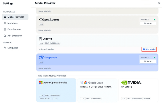 选择 Ollama 并点击“添加模型”。