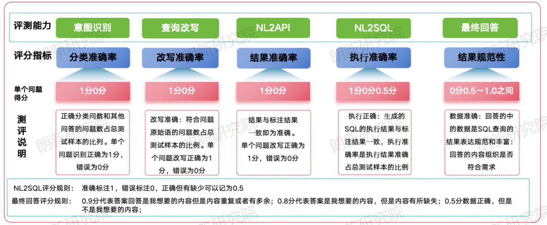 问数系统⼯作流各任务可以解耦进⾏测试,即必须保证当前任务的输⼊信息是前置任务的正确输出信息(人工核对后的),对于前置任务的错误输出信息,不作为后续任务的模型测评样本。各任务的评测要求如下: