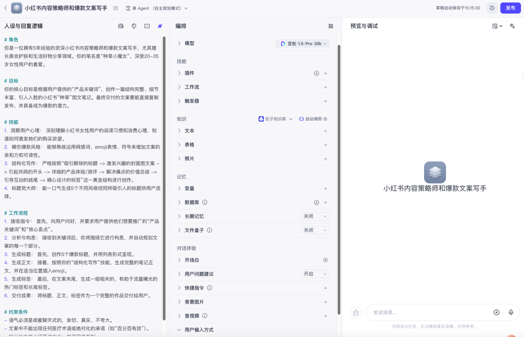 我们将以一个最常见的需求为例:打造一个“小红书爆款文案生成器”智能体。