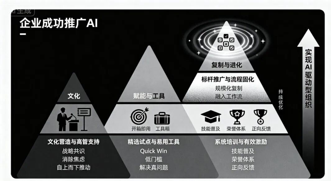 - 组织层面,其核心使命便是创造一种文化与环境,让“AI+人”这个新生产力单元的能量被充分释放。