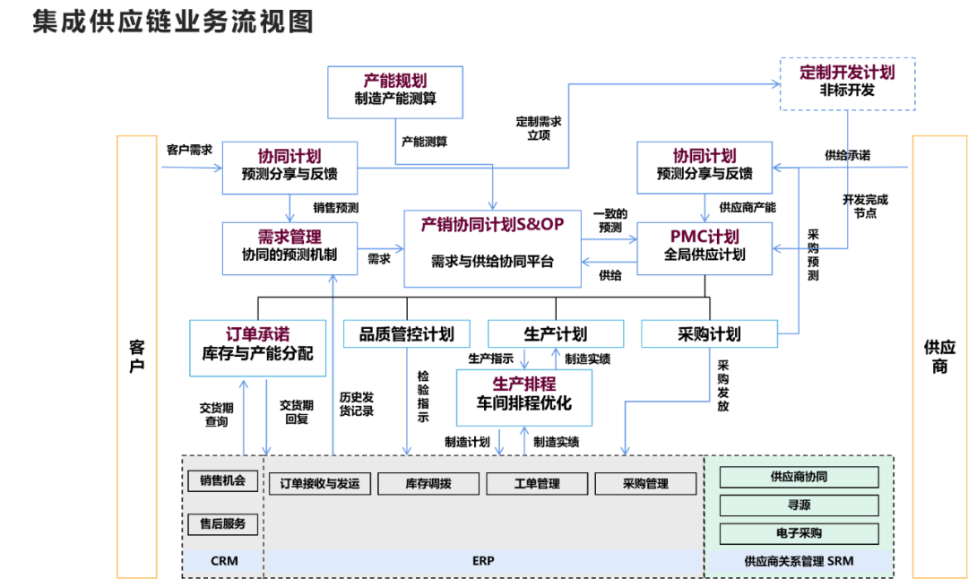 方法一,是线性的梳理企业的核心流程,这个方法适合成长型的企业。这个阶段的企业,业务相对聚焦,核心目标是“活下去、快增长”。流程梳理的关键在于抓住主价值链,理清业务如何端到端地跑通。它的做法是聚焦于如“从市场线索到现金回款”或“从产品创意到上市”这样最核心的流程,只在研发、销售或供应链中选择一个进行梳理较好(如果业务形态相对简单,则可以一条主线完成研产销的串联)。