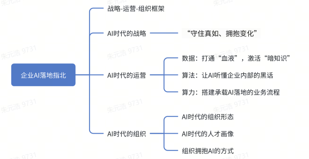 AI的到来,如同给这个框架的每个部分都装上了新的引擎与传感器,但它并没有改变框架本身。而我们的任务,是如何利用AI让这个系统运行得更好。基于此,企业在AI时代最需要想清楚的三个方面的典型问题便浮现出来: