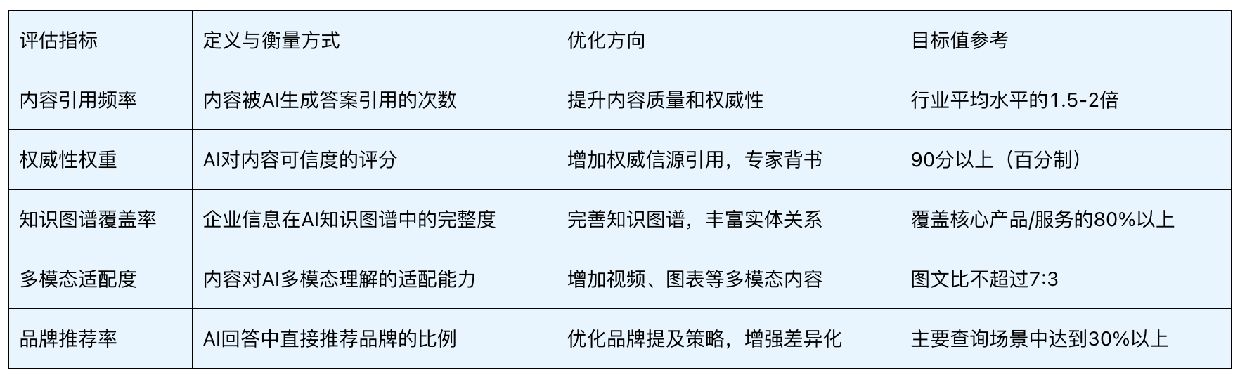 表:GEO核心评估指标与优化方向