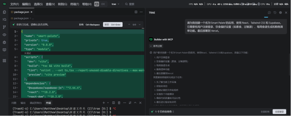 用 Trae Solo 彻底改变生活:“从零到一打造“个性化健康食谱助手”