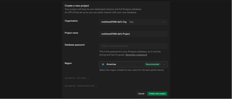 首先,您需要在 Supabase 官网 创建一个免费账户和一个新项目。