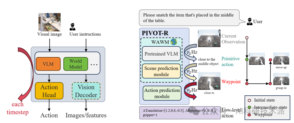 该论文介绍了一个名为PIVOT-R的模型,用于语言引导的机器人操作任务。它通过预测任务相关的关键点来改善机器人对动态环境的建模能力,从而提高操作性能,通过异步分层执行器(AHE)以不同的执行频率运行这些模块,从而减少计算冗余并提高执行效率。