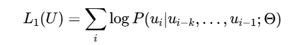 在此阶段,模型利用大量无标注文本语料,通过语言建模目标进行训练。其目标是基于上文预测下一个单词(Token),最大化以下似然函数: