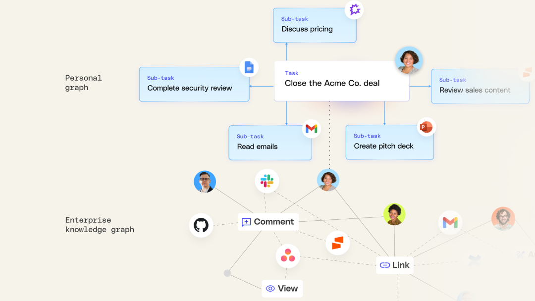 在Glean,我们通过一个新层——个人图谱——扩展了我们的知识图谱,它更好地理解工作中的人类上下文。它通过理解你处理不同类型工作的方法并适当地定制AI,将个性化提升到聊天历史之外。这些图谱与Glean的混合搜索架构一起,形成了上下文系统:反映每个组织工作方式的系统,使AI能够为其中的每个人更好地工作 。