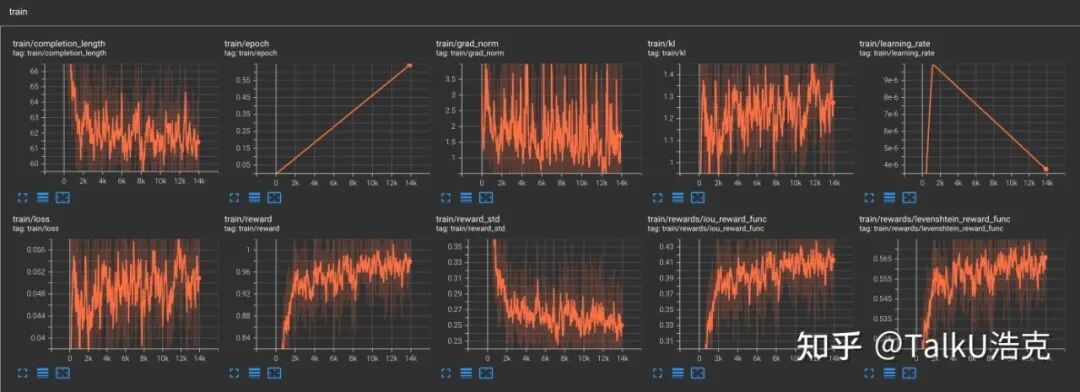 - iou_reward_func/levenshtein_reward_func:两个自定义的奖励函数,奖励上升后逐渐稳定;