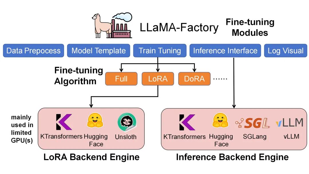 LLaMA-Factory框架结合KTransformers后端,实现对超大规模混合专家(MoE)模型的高效微调与推理。通过优化的计算架构和内存管理策略,可以显著提升训练和推理效率,为大规模语言模型的部署应用提供技术解决方案。