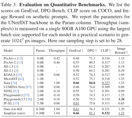 在标准基准测试中,仅379M参数的SnapGen战胜了一众"重量级选手":