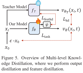 - 特征层蒸馏: 跨架构蒸馏(从DiT到UNet),匹配中间层特征