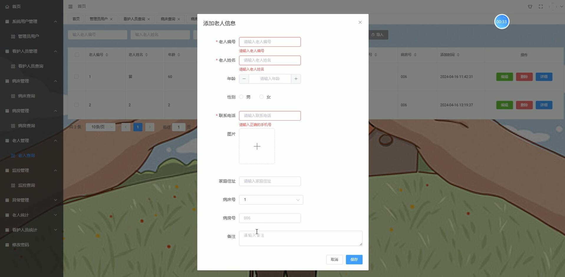 病床管理模块:管理病床的基本信息、使用状态等,方便安排老人入住和出院。