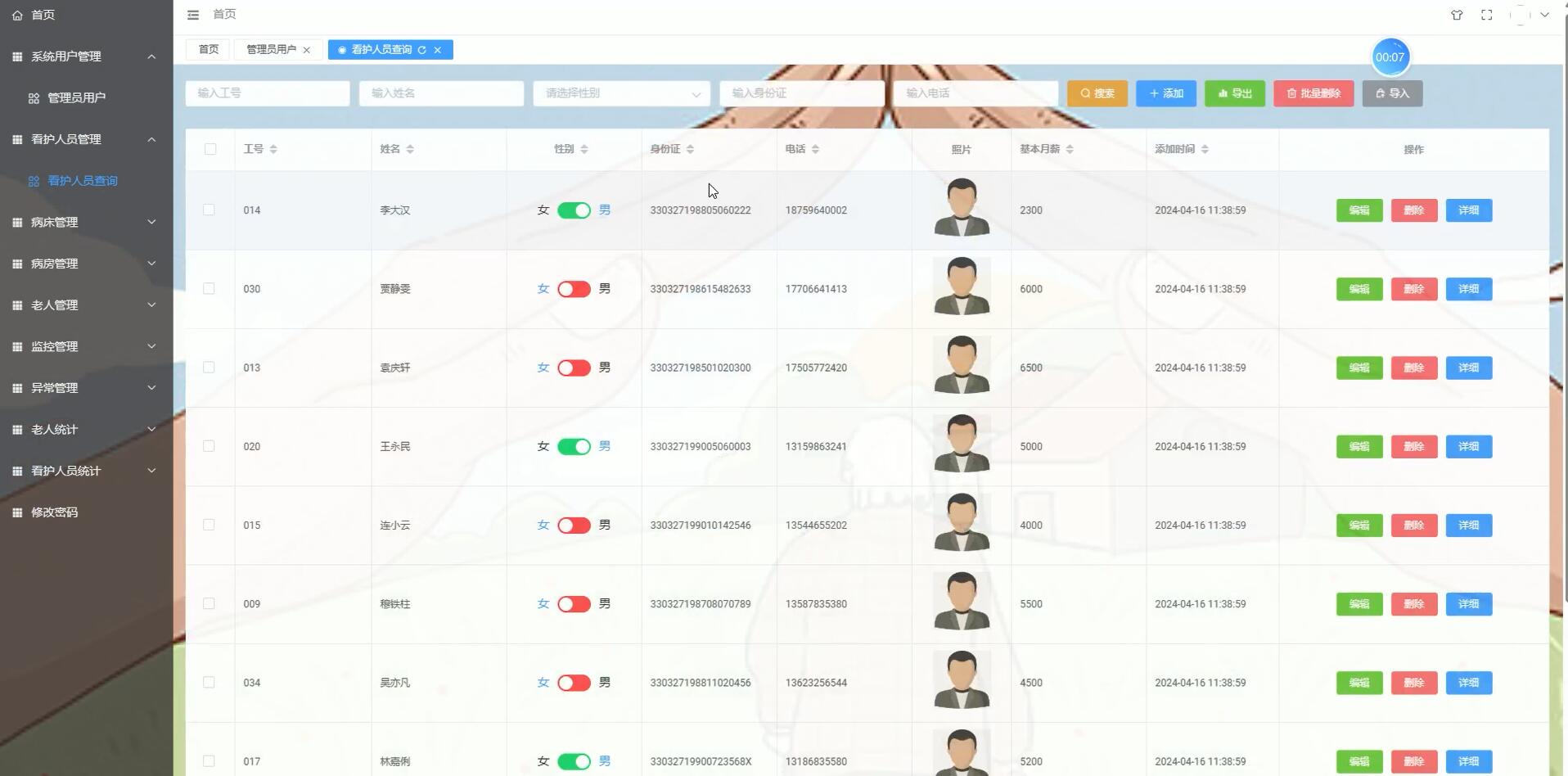 看护人员管理模块:对看护人员的信息进行录入、查询、修改和删除等操作,合理分配看护任务。
