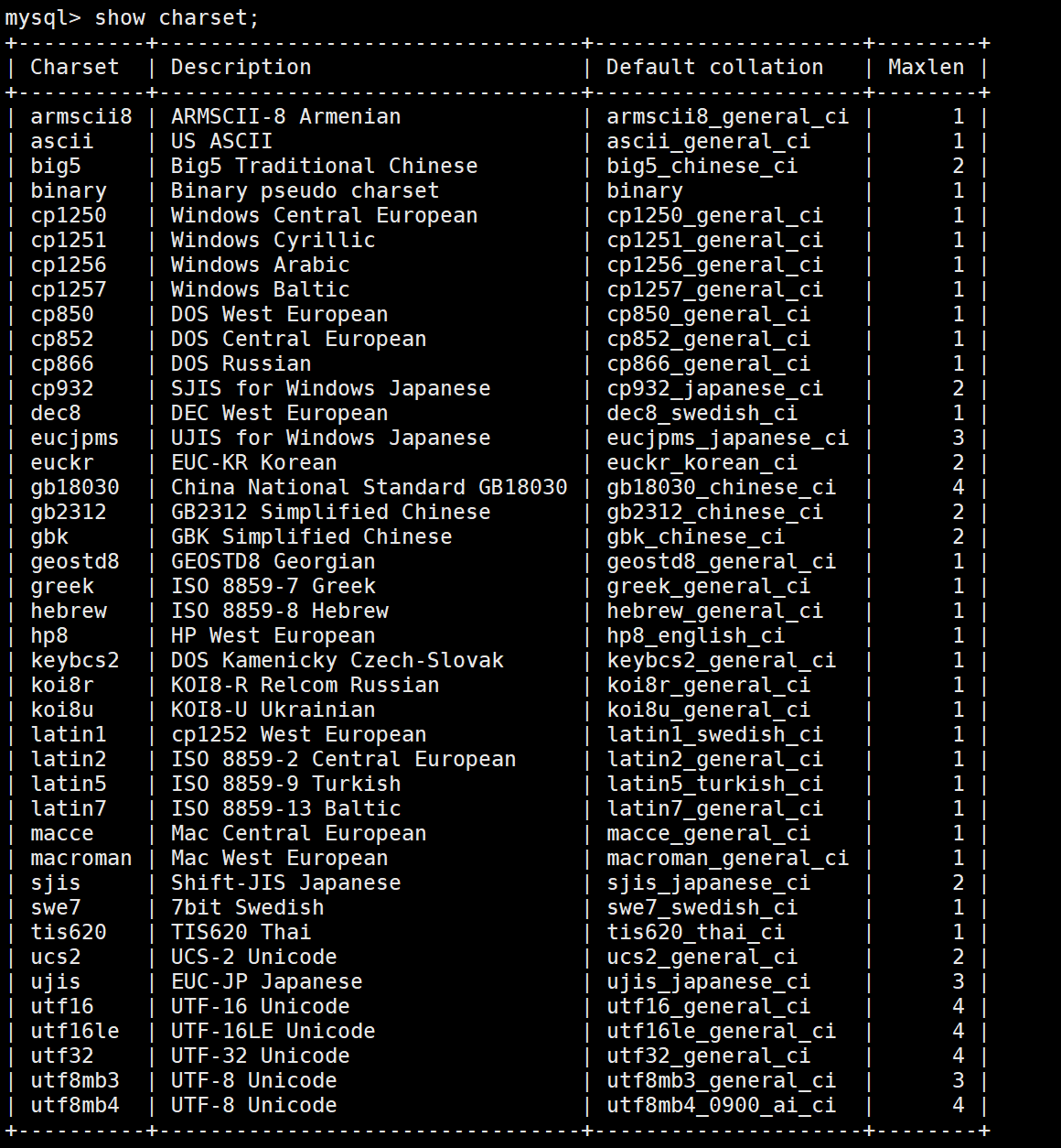 说明一下: 字符集主要是控制用什么语言,比如utf8mb4就可以使用中文。