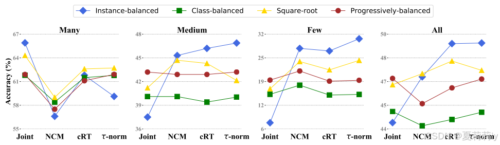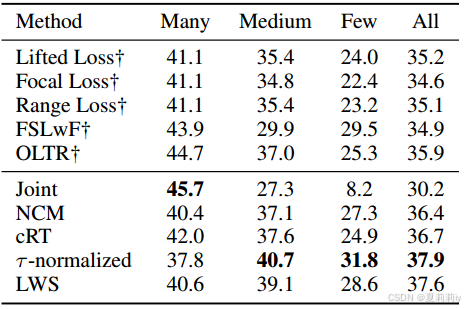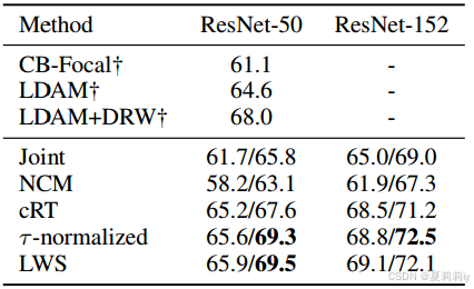 ①Classifier Re-training (cRT):应该是两阶段的训练,第一阶段训练表征,第二阶段固定表征然后使用类平衡采样随机重新初始化和优化分类器权重和偏置