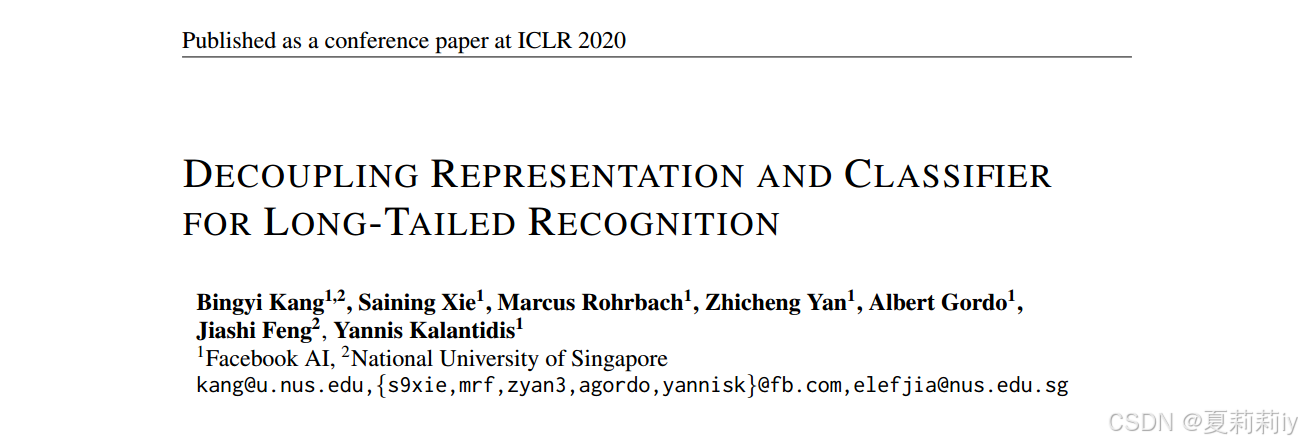 论文网址:Decoupling Representation and Classifier for Long-Tailed Recognition | OpenReview