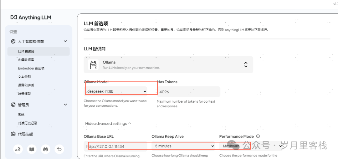 在配置过程中,我们特别注重模型与知识库的连接优化。通过将 Ollama 设置为推理后端,并在工作区中指定 DeepSeek 模型,我们实现了知识库与语言模型的无缝对接。此外,我们还根据实际需求调整了工作区的参数设置,确保系统在性能和准确性之间达到最佳平衡。