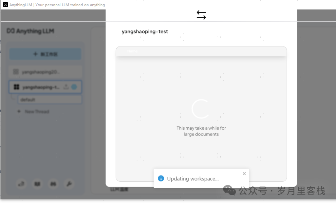 - 新建工作区:在 AnythingLLM 中点击“新建工作区”,为私有知识库创建一个独立的工作区