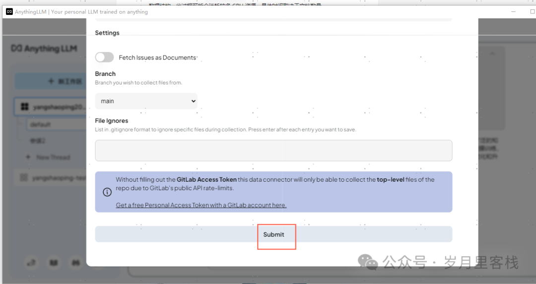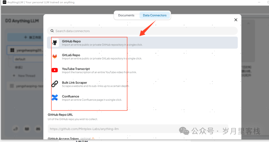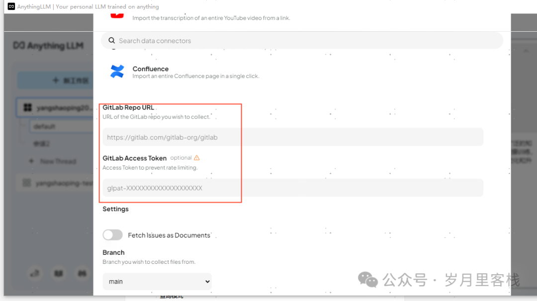 Data Connectors 功能支持从 GitHub、GitLab 仓库或网站爬取数据。用户只需输入仓库地址和 Token,即可导入指定目录或网页内容。