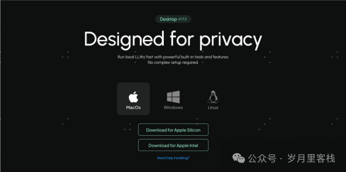 AnythingLLM 提供了 Mac、Windows 和 Linux 的安装包,用户可以直接从官网下载并安装。