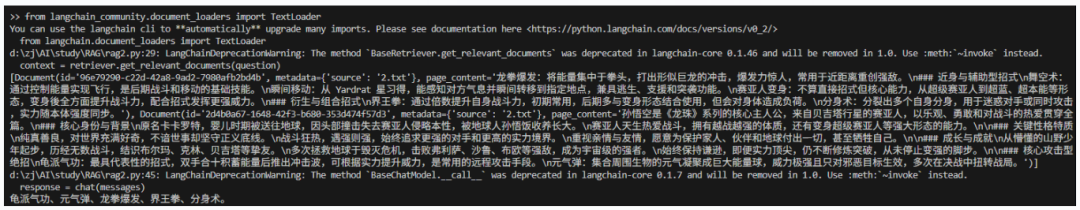根据控制台的输出,我们可以看到系统找到的分段,并且给出了正确的结果,而且我们这里问的是卡卡罗特,而文档里面一开始说的是孙悟空,说明大模型自动识别了卡卡罗特就是孙悟空。